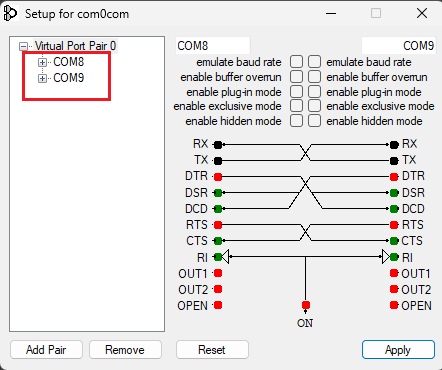 com0com is now configured and ready to use. - UPDATE RPi VERSION – IF NECESSARY