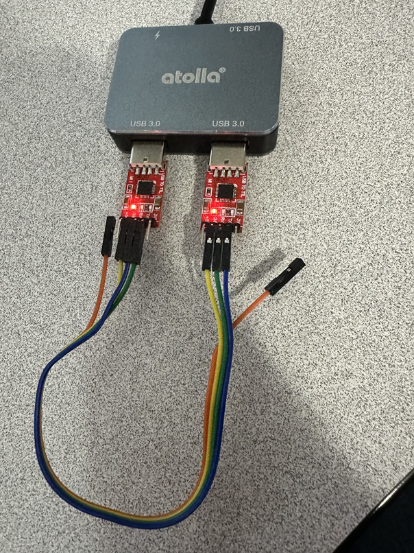 WSJT-X will be configured to control the 7300MK2 via CAT commands using the RemoteTx WebSerial feature through port ACM-1. Additionally, 2 CP2102 USB/TTL serial adapters will be wired in a loopback configuration to bridge the serial connection between WSJT-X and the RemoteTx WebSerial browser connection.