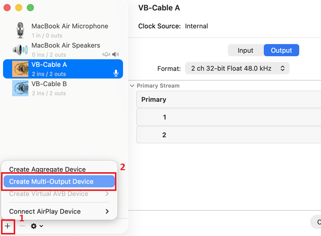 https://shop.vb-audio.com/en/mac-apps/30-vb-cable-ab-mac.html - Open the Audio Midi Setup control panel on the Mac.