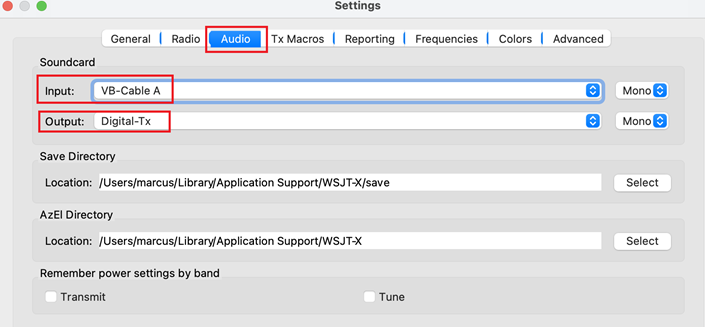 - Set the WSJT-X Audio Panel Input and Output so that it looks like this:
